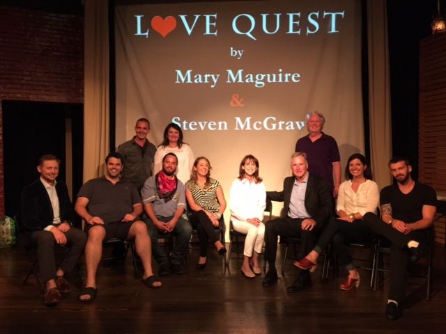 Pictured back row at the first staged reading of the original play, ‘Love Quest,’ is director Billy Gallo and playwrights Mary Maguire and Steven McGraw. Front row, left to right, are Ian Lindsay, Tom MacDonald, Danny C.Alfaro, Lara Fisher, Meg Bennett, Stephen Howard, Lindsey Buttles and Ian Marlow.